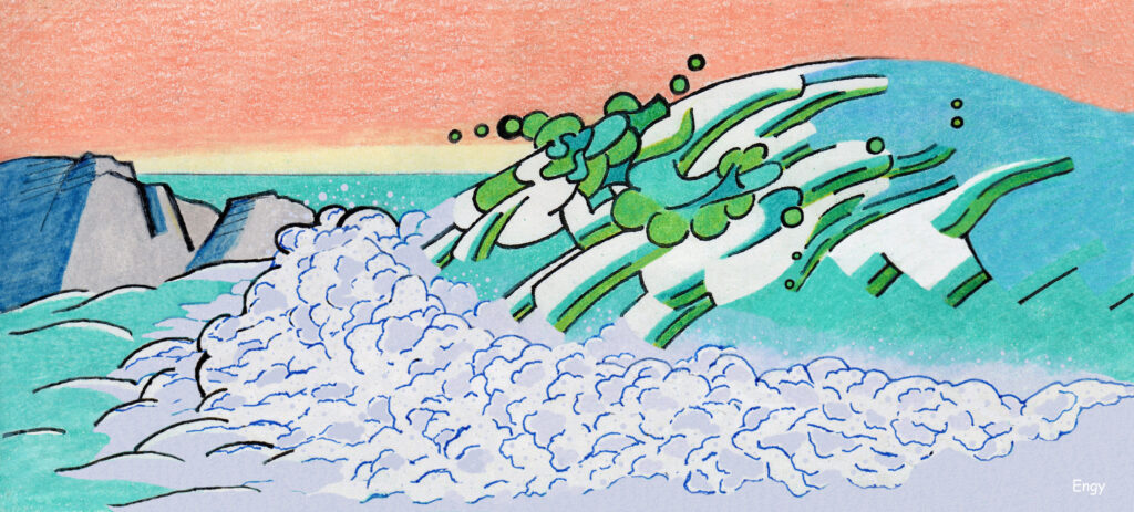 Napali Waves doodle – original color pencil version drawn after a trip to Kauai